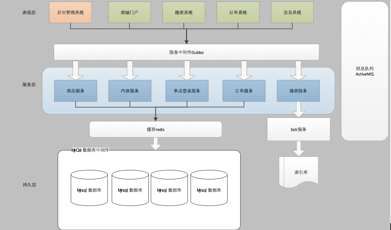 SOA:Service Oriented Architecture面向服务的架构。也就是把工程拆分成服务层、表现层两个工程。服务层中包含业务逻辑,只需要对外提供服务即可。表现层只需要处理和页面的交互,业务逻辑都是调用服务层的服务来实现。